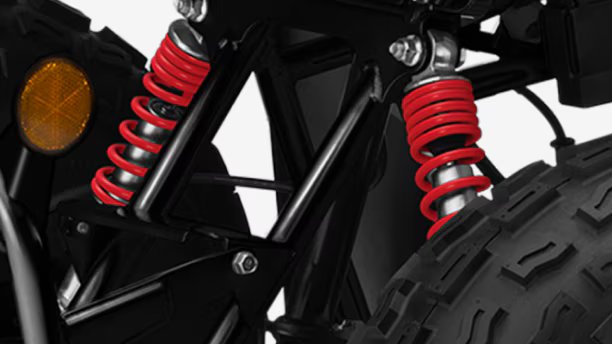 Up front, independent suspension features a pair of rugged shock absorbers with 2.6 inches of travel for a comfortable, controlled ride. In the back, a single-shock rear suspension delivers all-day comfort with trail-taming handling.